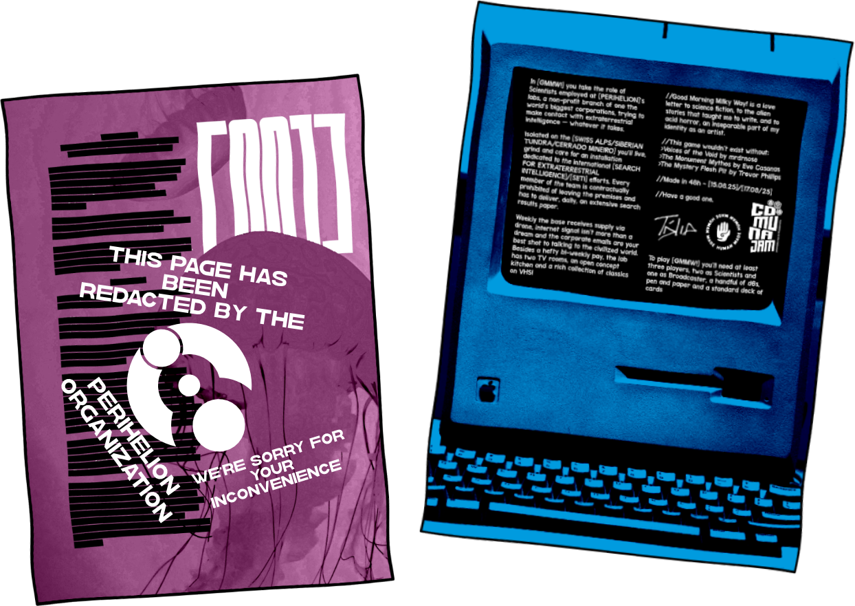 With 04 storybeats intertwining many kinds of contact, it's up to your [Team] to decide how you'll approach the [SETI] effort, and the many possible endings baked into this anecdote on curiosity, spiteful hope, and labor-borne boredom.